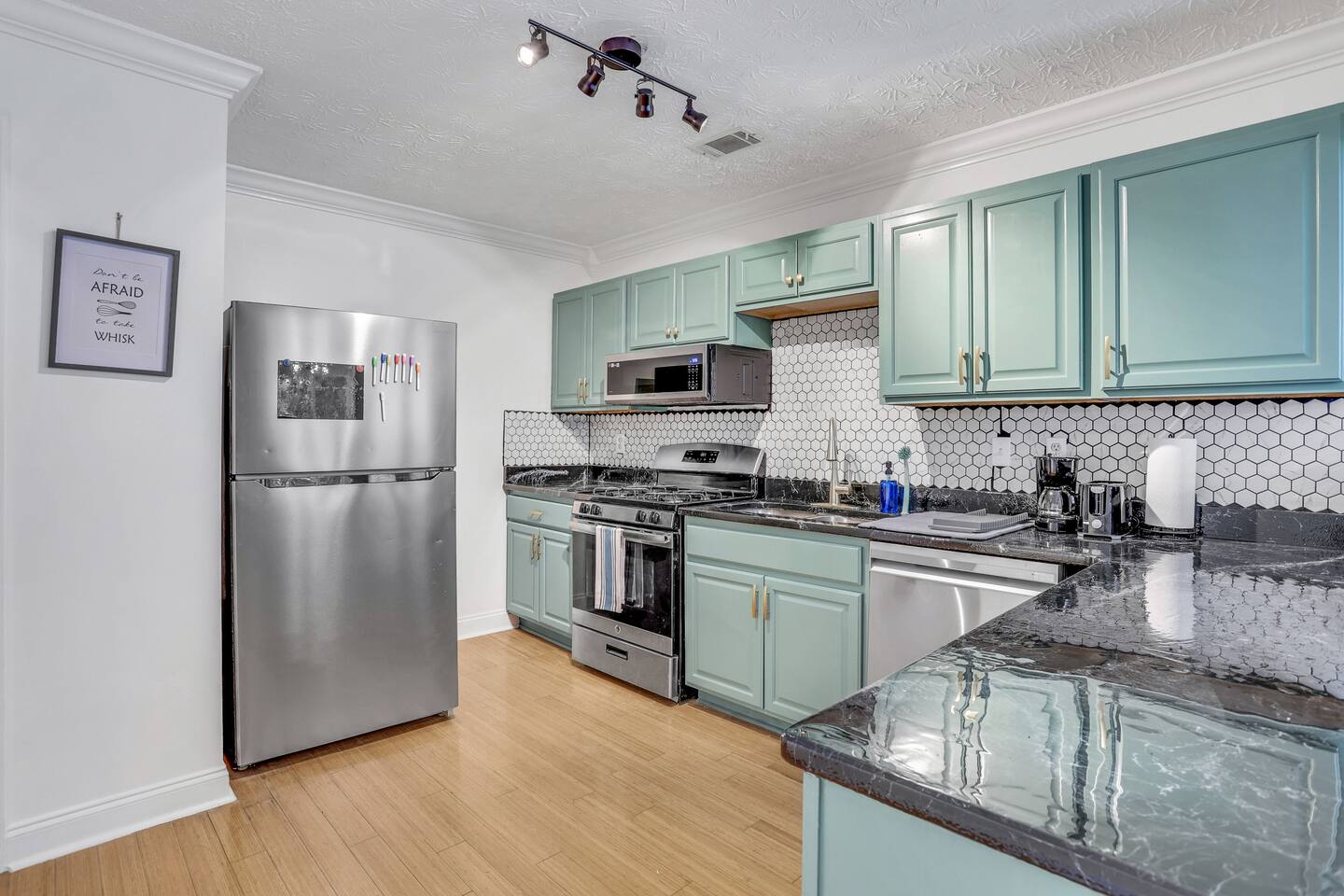 Welcome to your cozy and comfortable townhome, located near Truist Park and close to the city. Enjoy a relaxing stay in this pet-friendly home, which features a stunning rainforest green living room and a stylish kitchen. Cozy up by the fireplace surrounded by a large bookcase that adds a touch of elegance to the space. Take in the stunning sunset views from the outside deck, which offers a serene and private escape amidst the trees. Book your stay today for the ultimate in comfort!
