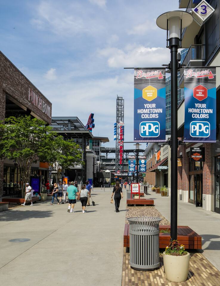 You can walk to Truist Park its 30-45 minutes away, there are hills so be prepared if your not used to it and sometimes traffic control only allows you to go certain paths. Uber may be more convenient for some especially on hotter days. There is a gas station, Enterprise, Domino's, Taco Cantina and Jamaica Mi Krazy within 15 minutes walking. Everything else would require a vehicle.